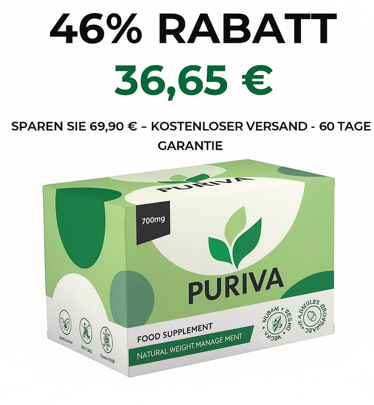 Puriva ist ein hochwertiges Nahrungsergänzungsmittel, das entwickelt wurde, um Ihr allgemeines Wohlbefinden, Ihre Vitalität und Ihre innere Balance auf natürliche Weise zu unterstützen. Mit sorgfältig ausgewählten pflanzlichen Inhaltsstoffen, Vitaminen und Mineralstoffen kann Puriva dabei helfen, den Alltag mit mehr Energie und Ausgeglichenheit zu meistern. Viele Kunden schätzen Puriva als Teil eines aktiven und bewussten Lebensstils, da es leicht in die tägliche Routine integriert werden kann. Das Produkt wird in der EU nach strengen Qualitätsstandards hergestellt und regelmäßig geprüft, um Sicherheit und Reinheit zu gewährleisten. Puriva ist frei von künstlichen Zusatzstoffen, glutenfrei und damit ideal für alle, die auf eine bewusste Ernährung achten. Dank der praktischen Kapsel-Form ist es unkompliziert einzunehmen und auch unterwegs geeignet. Beim Kauf über die offizielle Website profitieren Sie aktuell von bis zu 46 % Rabatt, kostenlosem Versand innerhalb der EU und einer 60-Tage-Geld-zurück-Garantie, die Ihnen volle Sicherheit beim Ausprobieren bietet. Das Bestseller-Paket mit drei Einheiten kostet nur 79,95 € und sorgt für eine langfristige Versorgung bei maximalen Preisvorteilen. Puriva steht für einen natürlichen Ansatz, der Körper und Geist im Alltag unterstützen kann – ganz ohne übertriebene Versprechen, sondern mit dem Ziel, Ihre Lebensqualität nachhaltig zu fördern. Entscheiden Sie sich jetzt für Puriva und investieren Sie in mehr Ausgeglichenheit, Vitalität und Wohlbefinden – Tag für Tag, auf natürliche und sichere Weise, mit attraktiven Angeboten und voller Garantie.